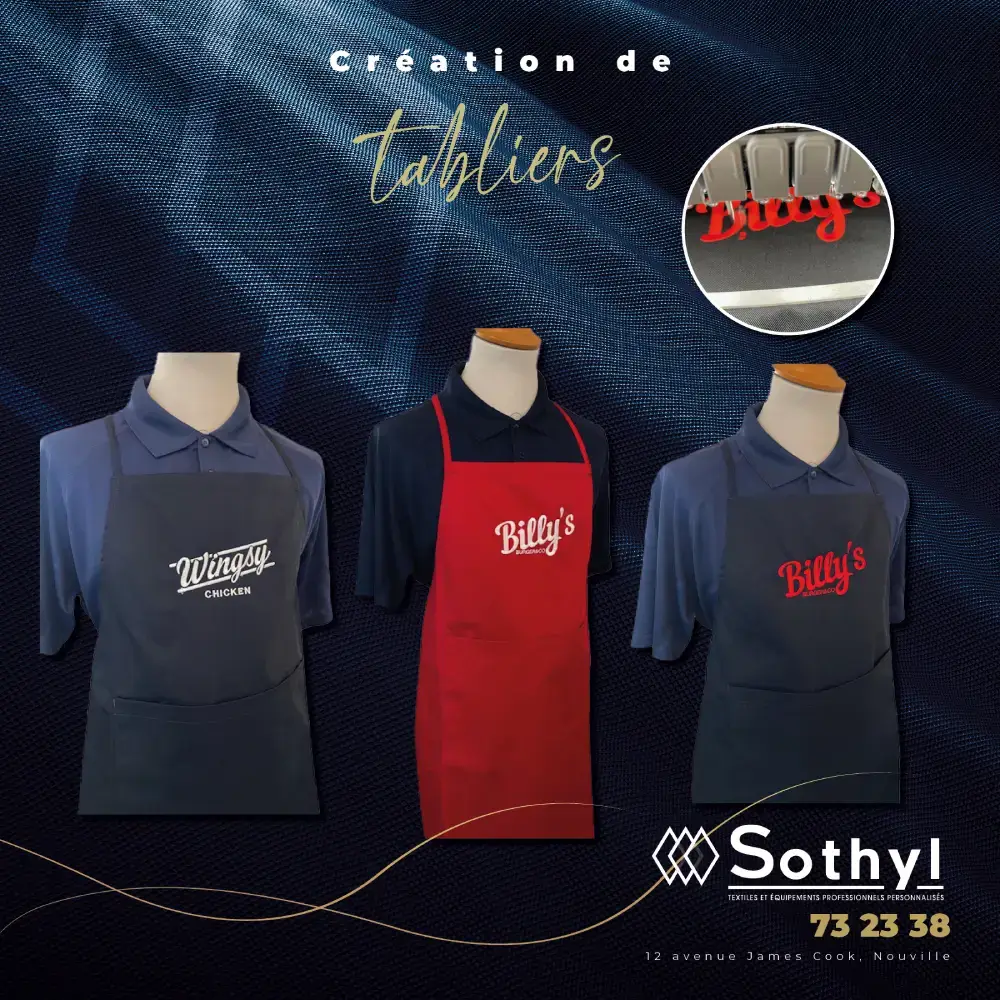 Sothyl assure une chaîne textile rigoureuse, de la sélection des matières premières à la confection finale. Spécialisés dans les vêtements professionnels personnalisés et les uniformes personnalisés, nous conjuguons expertise artisanale locale et méthodes de fabrication conformes aux standards des secteurs les plus exigeants. Chaque pièce, chemise, polo, tablier ou pantalon, allie résistance, confort et conformité réglementaire.
